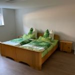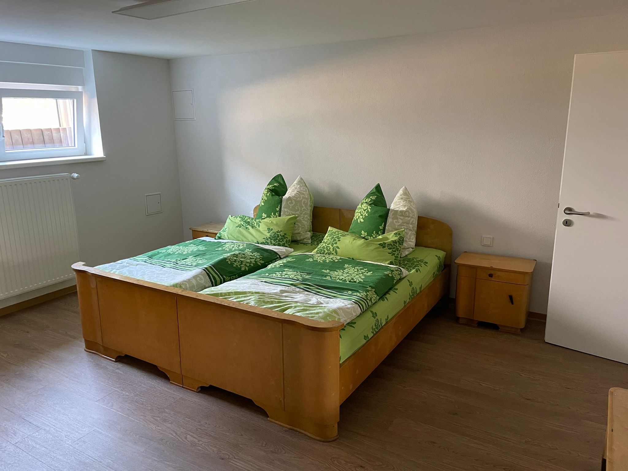 - Schlafzimmer mit einem Doppelbett und Bettwäsche